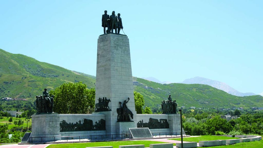 The This is the Place Monument is a historical monument at the This Is the Place Heritage Park, located on the east side of Salt Lake City, Utah, at the mouth of Emigration Canyon. It is named in honor of Brigham Young’s famous statement that the Mormon pioneers should settle in the Salt Lake Valley. On July 24, 1847, upon first viewing the valley, Young stated: “This is the right place, drive on.”